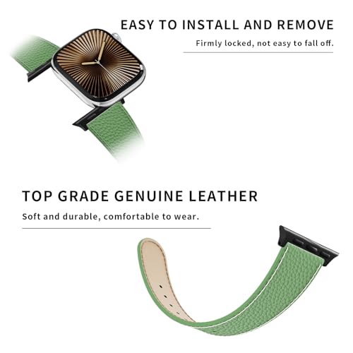 - Wide Compatibility: This leather band is compatible with Apple Watch Ultra band, Ultra 2, Series 9-1, SE, and other models, fitting 49mm, 46mm, 45mm, 44mm, 42mm, 41mm, 40mm, and 38mm cases. The adjustable band fits wrist sizes from 6.5 inches to 8.5 inches (approximately 165mm-215mm), ensuring a comfortable and secure fit for wrists of all sizes, Premium Leather Material: Made from natural cowhide, this leather band is specially softened for a smooth, breathable feel, offering a luxurious and comfortable wearing experience. The high-quality leather guarantees long-lasting color retention, resists fading, and prevents odors, keeping your band looking fresh over time, Magnetic Buckle Design: The innovative magnetic buckle design makes wearing the band easy and secure. Simply bring the ends together, and the strong magnet will hold the band firmly in place. This sleek design combines modern aesthetics with functionality, offering both comfort and convenience for your Apple Watch, Classic Meets Modern Design: This leather band seamlessly blends classic elegance with modern style, making it perfect for formal occasions, office wear, or casual everyday outfits. Its timeless luxury feel adds a unique touch, enhancing the look of your Apple Watch Ultra band, The Perfect Gift Choice: This leather band is the ideal gift for family and friends, combining both style and practicality. Perfect for birthdays, anniversaries, or holidays, it’s a personalized gift that reflects your unique taste. Its exquisite design and premium materials make it a must-have accessory for any Apple Watch user