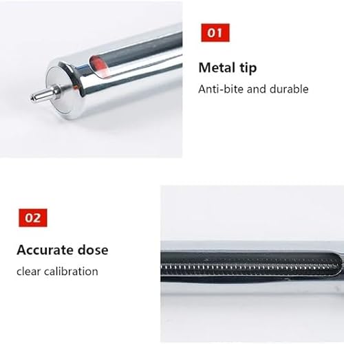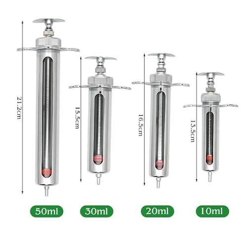 - Syringe Capacity: 10ml total length: 13.5cm Animal Husbandry and Veterinary made specifically for prevention, treatment and other injection drug solution, Adjustable dose, injection on demand.adjustable dose could be adjusted according to demand product manual.Widely used in a variety of animals Cats, dogs, cattle, pigs, chickens, ducks, etc/professional High-quality metal syringe veterinary syringe,304 high grade Quality stainless steel, simple structure, Have qualitative feeling, easy to operate and feel comfortable.The cause of the temperature difference and the internal structure of the product are the glass tube material, which causes water mist. When the buyer receives it, it appears that there is a small amount of liquid in the item. This is normal. Just clean it up when you use it., Strong firmness, resistance to high temperature.Can be reused after sterilization.Equipped with a dose buckle device, levels adjustable, the dose is more accurate, the use is lighter, and the injection is convenient, if you want to get other capacity please check my store