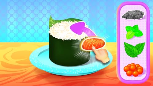 - Interactive Cooking Experience: Kids get to manage their own virtual kitchen, where they can prepare, roll, and customize sushi rolls with a variety of ingredients., Educational and Fun: The game combines fun with learning by teaching kids about sushi making, sushi rice, and various sushi ingredients, improving fine motor skills, creativity, and following instructions., Creative Freedom: The game allows children to experiment with different fillings and toppings, creating unique sushi rolls, pancake sushi, cupcake sushi, and more., Unlockable Ingredients & Tools: As kids progress through the game, they can unlock new ingredients and kitchen tools, allowing them to make more complex and exciting sushi dishes., Free to Play: Sushi Maker & Roll Games offers hours of entertainment without any in-app purchases, making it a perfect free game for kids who love cooking and learning in the kitchen.