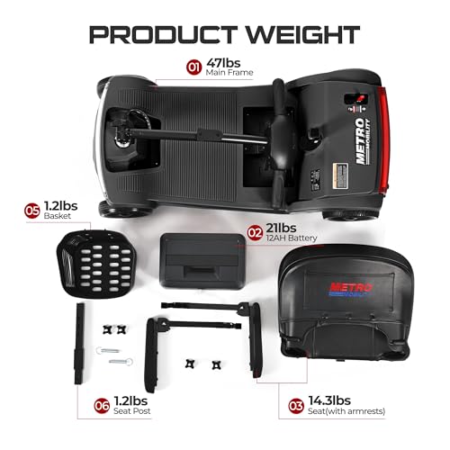 - High-Capacity Performance: Built for strength and range, this scooter supports up to 330 lbs and is powered by a 260W brushless motor. With a 12AH removable lead-acid battery, enjoy up to 10 miles of travel per charge and a smooth ride at speeds up to 4.97 mph., Comfortable & Travel-Ready: Ideal for longer trips, it features a detachable, breathable seat and an extended 18.9" footrest for extra legroom. The adjustable tiller ensures a comfortable, ergonomic ride tailored to your needs., Enhanced Safety Features: Ride with confidence using front and rear LED lights for visibility and an electromagnetic brake system that stops instantly when you release the throttle—making every ride safer and smoother., Smart & Convenient Design: A built-in USB port keeps your devices charged on the go, while the intuitive controls and durable frame make daily use simple and dependable., Metro Mobility Assurance: We stand behind every product with a 1-year limited warranty and dedicated customer support. At Metro Mobility, your comfort, safety, and satisfaction always come first.