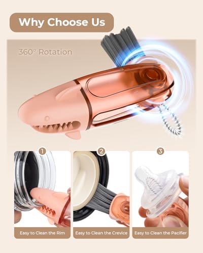 - Unique design: This three-in-one cup lid brush is in the shape of a niche shark and comes in three different designs, including a U-shaped brush, a 360°rotation corner soft bristles brush, and a hard gap brush. It can easily clean various crevices and free your hands., Quality Materials: The multifunctional cleaning brushes are made of quality TPR and ABS material, ensuring sturdiness and long-lasting performance. These quality materials guarantee long-lasting performance, making the brushes a reliable companion for your cleaning needs over time., Deep Cleaning:Our cup lid brush plays different roles in different parts.The u-shaped brush can easily clean the rim of the cup, the soft-bristled brush can clean the mouth of the baby bottle, and the hard-bristled brush is more suitable for cleaning the internal gaps of the cup lid. This can help you clean efficiently and make the cups cleaner., Compact & Easy Storage:The cup brush tool is compact and lightweight, making it effortless to carry around. And it is designed with a small hanging hole for easy storage and quick drying., Widely Application:3-in-1 multifunctional cup lid cleaning brush set is designed to clean a wide range of drinkware and other household items, from wine glasses, teacups, and baby bottles to sports cups, mugs, cleaning kettles, kettle lids, plates, pacifiers, teapot spouts, blender, keyboard, it becoming an essential tool that covers all your cleaning needs.