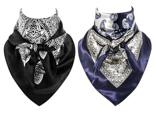 - 2 Pack Wild Rag: One package includes 2 western bandanas with different colors, versatility in your wardrobe or the option to share with a friend, Large Cowboy Neckerchief: 35"x35"/90x90CM, versatile size which allows for various tying techniques without being too bulky or too small, Material: polyester, touch like silk, soft, smooth and comfortable to wear, provide warmth without bulk, Occasions: wild rag can protect neck from sunburn, windburn and dust and add a touch of personal flair to one's Western attire and become a iconic symbol of Western fashion. Suit for western events like horse show, equestrian activities, country music concerts, enjoy the music and atmosphere, horseback riding, outdoor work, ranching, casual outings, western weddings, hunting, line dancing, historical events, especially related to the American West, Western Gift for Men: cowboy present for ranchers, farmers, western riders, horse competitors, music artists, country music performers, who enjoy outdoor activities like hunting, farming or horseback riding