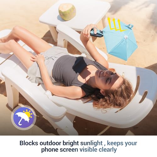 - Upgrade Magnetic Phone Umbrella: The New Black Anti-UV Coating Design enhances the Anti-glare and Anti-heating effects of outdoor phones. Specially compatible with iPhone 17/Air/16/15/14/13/12 series/Android/iPad/Kindle/Switch and more devices. (Note: Package includes magnetic metal rings!), Strong Magnetic Phone Umbrella for Sun:This Phone Umbrella features a strong magnetic ring, ensuring a secure attachment to the back of your phone. Don't worry about it falling off easily. It will not affect the magnetic attraction effect due to the heat generated by the sun's irradiation., Multi Angle Adjustment: The phone sunshade comes with an adjustable angle umbrella handle made of metal, which can be bent according to your needs to meet different shading effects; And the extended umbrella handle will not obstruct your screen either., Phone Ring Design:The phone umbrella is equipped with a built-in rotating Phone Ring that can rotate 360 °, and can be adjusted from multiple angles to provide a flexible and comfortable grip., Outdoor Phone Sun Shade: When you're sunbathing outside, you no longer have to squint at your phone screen. Using our phone umbrella can effectively help you block sunlight and reduce the heat generated by prolonged exposure to sunlight on your phone. At the same time, it can be folded for storage and placed in a bag for easy carrying.(The diameter of the umbrella is 9.8''/25cm)