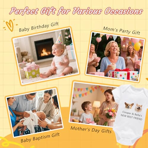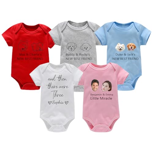 - Customizable Designs: Our Custom Baby Onesie offers a choice of three delightful styles—adorable photos or lifelike portraits, Special Text—showcasing your beloved pets or family. Personalize it further with enter name, creating a unique piece perfect for families celebrating a pregnancy announcement.This adorable infant bodysuit is the perfect pregnancy announcement for new grandparents. Your family will love this fun surprise!, Fabric and Size: Crafted from premium organic cotton, this baby onesie is soft and gentle on delicate skin, ensuring comfort for your little one. The durable fabric resists fading, cracking, and peeling, making it a long-lasting addition to your baby's wardrobe.Please Note: 0-3 months = 3M,3-6 months = 6M,6-9 months = 9M,9-12 months = 12M, 12-18 months = 18M, 18-24 months = 24M, Convenient Features: Designed with a three-button reinforced closure and shoulder snap, our onesie provides easy dressing and undressing. Say goodbye to sleeve constraints, allowing for effortless outfit changes while ensuring your baby's comfort during playtime., Perfect Gift for All Occasions: Ideal for pregnancy announcements, newborn surprises, or thoughtful gifts for new parents—this versatile onesie warms hearts, making it the perfect present for grandparents and any celebratory gatherings., Usable for Various Settings: This colorful baby onesie is suitable for indoor and outdoor wear, featuring adorable colors and patterns that make it a fantastic outfit choice for photo opportunities. It's the perfect pregnancy reveal gift for parents and grandparents alike!