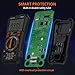 - 【9999 Counts Digital Multimeter】--- This Voltmeter Multimeter Delivers Accurate Measurements for AC/DC Voltage, Current, Resistance, Capacitance, Frequency, Duty Cycle, Temperature, Continuity, NCV, Diode, HFE, LOZ, Infrared Test. With a 9999 Counts Display, It Ensures Precise Readings, Ideal for Both Professionals and DIY Enthusiasts, 【Manual Range Adjustment】--- This Multi Meter Offers Manual Range Selection, Simply Select the Voltage, Current, Resistance, Etc. You Want to Measure, Then Manually Adjust the Measurement Interval to Suit Your Needs, Providing Accuracy and Reliability Every Time You Test Circuits or Troubleshoot Electrical Components, 【Built-In Safety Protection】--- Multimeter Tester Includes Overload Protection, Double Fuses, and Non-Contact Voltage Testing (NCV) for Maximum Safety. With a Backlit Display and Built-In Flashlight, You Can Work Safely Even in Low-Light Conditions, Ensuring Accuracy and Protection for Both the User and the Multimeter, 【Multifunctional】--- Featuring a Large and Easy-to-Read Display with an Analog Bar, Can Simultaneously Display Frequency and Temperature. The Foldable Stand and Back Storage for Test Leads Make It Easy to Store and Use. And Switch The Dial And The LED Lights On The Jacks Will Shine Accordingly, Making It the Perfect Companion for Both Professional Electricians and Home Users, 【Complete Set of Accessories Included】--- The Automotive Multimeter Comes with Essential Accessories Such as Crocodile Clips, Test Probe, Temperature Probe, Screwdrivers, Spare Fuses, and Storage Bag, Save the Cost of Buying Additional Accessories