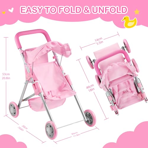 GAGAKU Baby Doll Stroller for Toddlers, Foldable Toy Stroller with Storage Basket and Bag, Diaper - Reborn Doll Accessories for Girls & Kids Ages 3+