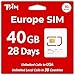 TSIM Europe SIM Card 40GB Data + Unlimited Local Calls in 38 Countries for 28 Days | Use in The UK, Italy, Switzerland, Turkey & 30+ EU Countries