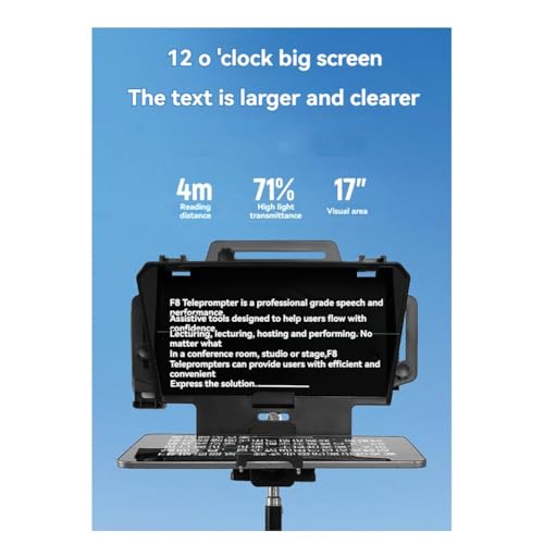 - Enhanced Live Streaming and Recording: Perfect for vloggers, broadcasters, and educators looking to enhance their video production quality with clear, prompt text display., Universal Compatibility: Designed to fit a wide range of devices including tablets, laptops, smartphones, and SLR cameras, making it a versatile choice for various media applications., Large Screen Support: Accommodates larger devices easily, ensuring you can read your scripts without strain regardless of the device size., Portable and User-Friendly: design coupled with easy setup features allows for hassle-free transportation and assembly, ideal for on-the-go professionals.