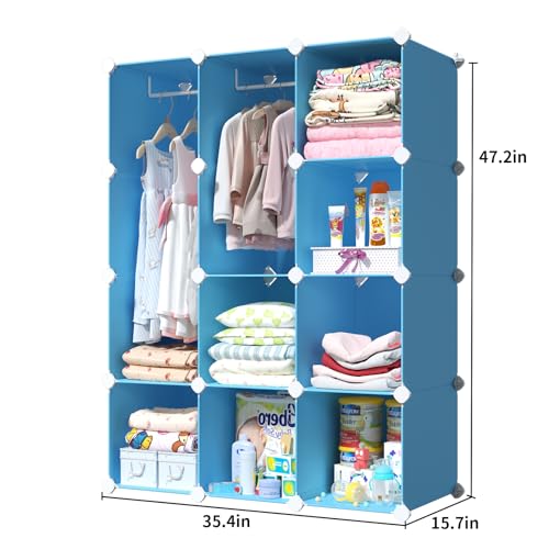 VIPZONE Baby Dresser, Kids Closet Organizers, Portable Kids Wardrobe for Closet, Bedroom, Nursery, Cubby, Cabinet, Clothes, Dress, Baby Storage Shelf, Armoire Clothes Hanging (Blue)
