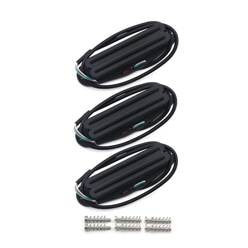 - Dual hot rail style pickup twin coil humbucker pickup fit Strat style electric guitar, Magnets: Alnico 5, fiber plate flatwork bobbin, wax potted to eliminate any unwanted feedback and noise, Resistance: Neck pickup 6-7k, Middle pickup 9-10K, Bridge pickup 12-13K. Color: full black pickup, 4-conductor wires, we recommended use with 500K potentiometer together to get better tone, 3pcs N+M+B pickup set, come with screws and springs, easy to install