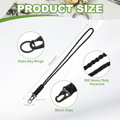 - DURABLE MATERIAL- The paracord keychain is made of 4-strand polypropylene and 550 paracord, sturdy and reliable, comfortable and soft to wear, not easy to tear, and designed with a metal key ring, which is sturdy and secure to lock your things, MULTI-APPLICATION -These multi-purpose lanyards are suitable for hunting, hiking, fishing, cycling, walking, jogging, traveling, boating, camping, etc; And the paracord lanyard to connect your key, ID card, badge, cell phone, camera, wallet, whistle and more for daily, outdoor and survival applications, can also be applied as a backpack pendant., KEY POINTS -This paracord lanyard can be a great gift for your father, lover, teacher, or friends on their birthdays, anniversaries, weddings, Valentine's Day, Father's Day, Christmas, and other special events or a reward for yourself, PARCEL CONTENT -Color: Black; Style: Heavy Duty 550; Material: 4-strands Polypropylene (7 cores); Size: 55 x 3 cm / 22 x 1.18 inch (L*W); Key Ring Diameter: 2.8 cm / 1.15 inch; Wire Diameter: 0.8 cm / 0.031 inch; Packing List: 1 Pack x Paracord Neck Lanyard, TIPS -The round split ring is easy to open and close, the length is adjustable by cord lock, you can attach items in a convenient way and carry them everywhere. They can access to the item quickly when you need them.
