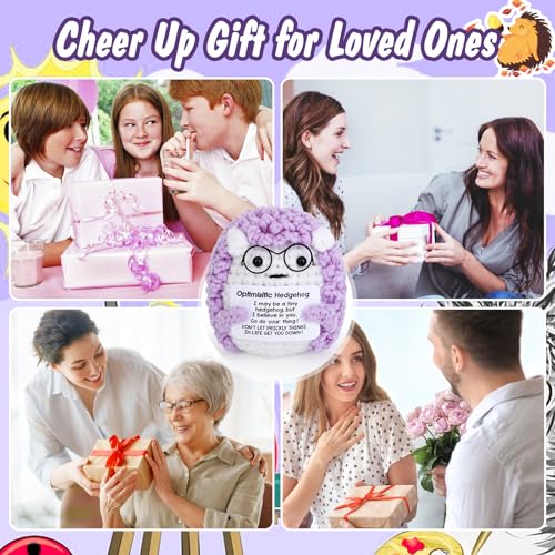 - Heartwarming Hedgehog Doll Set - The package includes a knitted hedgehog , an encouraging greeting card and a keychain. The chubby little hedgehog doll with a healing smile will accompany you through every moment when you need to cheer up.The inspirational quotes on the key quietly convey support and companion. Whether it is hung on a bag or keychain, it can light up your good mood at any time. This set will definitely surprise your friends,family!, Handmade Crochet Hedgehog - Vspek hedgehog Dolls are hand-knitted with soft wool and have excellent elasticity.It does not deform when kneaded when anxious, and can be used as a decompression artifact.Put it on the desktop as a healing small ornament.Small and portable,it can even easily be put in a bag. It is a great choice to express thoughts and give yourself encouragement., Emotional Healing Companion - Positive crochet hedgehog is holding a encouraging greeting card in hand, and the inspirational words convey positive energy, motivating you to face setbacks positively and bravely every day.It not only provides emotional and mental health support, but also is your indispensable healing partner. Choose these charming dolls to add warmth and laughter to your life!, Exquisite Decoration Design - Let this adorable hedgehog doll add a touch of warmth to life! Whether you place it on your desk, office desk, car dashboard, it is not only an exquisite decoration but also a warm companion that conveys positive energy and lights up every moment of your daily life.No matter how busy life is, there is always a pure and beautiful thing waiting for you to discover., Encouraging Gift for Men&Women - Perfect gift choice for birthdays, Father's Day, Mother's Day, graduation, housewarming Christmas and other occasions.It is not only a blessing and encouraging spirit gift for your friends and family, but also a gift to heal and accompany yourself. Making every ordinary day shine with warmth and light.