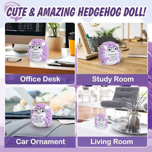Positive Emotional Support Crochet Purple Hedgehog, Funny Handmade Knitted Doll with Card&Keychain, Home Office Desk Decor Birthday Holidays Cheer up Gifts for Parents Friend Lover Coworker Teacher