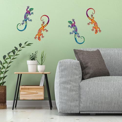 - 【Design Excellence】This 2-piece set of lizard gecko wall decorations Designed with a free-spirited charm where vibrant hues, eye-catching patterns, and whimsical accents transform your space and showcase your personality. interesting decorations for your patio, country, farmhouse, 【Sturdy Material】Gecko wall art of lightweight metalthat will not break or corrode, does not fade, is odorless, durable and reliable.abstract line iron wall hanging signs ,features a large reptile in eclectic colors of yellow, orange, blue and silver!, 【Suitable Size】Each vintage aesthetic hanging farmhouse decor measures 11.8 x 5.6in /30 x 14.2 cm, Despite the animated size, the overall construction displays a realistic appearance of the lizard with a spiraled tail。ideal for hanging anywhere in the house such as in front of the fence gate, 【Easy Installation】The wall hanging decor silhouette wall art, easy and convenient to install, designed with hanging holes, easy to hang on indoor and outdoor walls in bedroom, living room, dining room, cafe., 【Wide Application】Rustic nature theme metal painting wall decor, dress up your house decor with exotic patterned patio wall decor that is pleasing to the eye, this metal lizard wall decor art sculpture can be used as a beautiful gift for your family and friends!