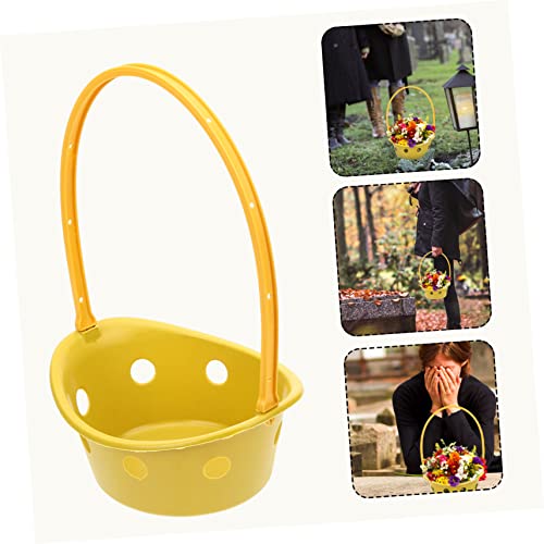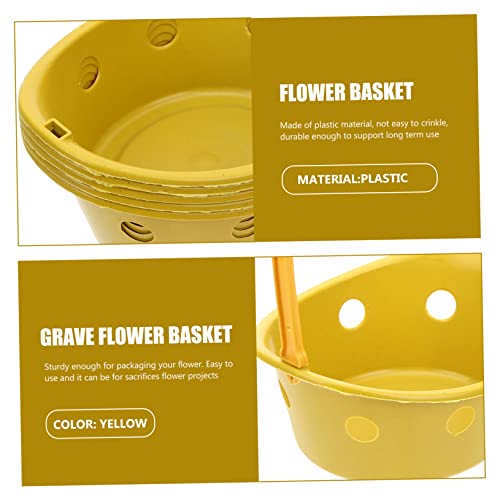 VICASKY Plastic Memorial Flower Basket Tote, 5pcs Yellow Chrysanthemum Arrangement Baskets