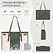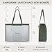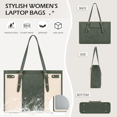 - High-quality durable materials: Made of PU leather and polyester lining, this women's laptop bag is hard-wearing to withstand daily friction and extend the life of the bag. At the same time, the leather laptop bag is also waterproof, in case of accidental spillage of liquids, such as rain, coffee, etc., it can prevent the liquid from seeping into the computer bag, thus protecting the laptop and other valuables from damage, providing all-round protection for your device., Large capacity and security: Measuring 42*15*30cm, the laptop bag can hold a 15.6-inch laptop, and the interior is equipped with a thickened foam padding for extra protection, while the velcro design securely holds the laptop inside the office bag to prevent friction or impact caused by shaking during movement. In addition to the laptop compartment, the work tote has a zipped pocket, and the interior is strategically arranged with multiple pen slip pockets so you can carry your daily essentials., Reasonable and practical design: This laptop tote bag has an adjustable shoulder strap that takes into account the needs of people of different body types and can be freely adjusted to suit your needs. The metal zipper on the top of the women work bag opens and closes smoothly so you can quickly access your belongings. The metal sole design can avoid direct contact between the bottom of the laptop bag and the ground, and reduce the damage caused by friction on the bottom of the bag., Multi-Scenario: This ladies laptop bag is suitable for various scenarios such as workplace and leisure. On your commute, the work bag can easily hold your documents and other office supplies; When you go out, important items such as passports and air tickets can be stored in your handbag, so that you can travel worry-free; While you're in school, a college computer bag can hold everything you need to study. It can truly realize the multi-purpose of one pack and bring convenience to your life., Great Gift Options: This leather laptop bag is designed with a focus on the perfect combination of style and lightness, making this women's laptop bag a great gift choice. Whether it's a holiday, birthday, or anniversary, giving it as a gift is thoughtful and meaningful. Laptop bags for women are available in a variety of colors, making them easy to match with a variety of clothes and are suitable for casual wear, formal wear, and more.