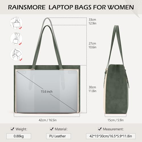 RAINSMORE Laptop Bags for Women 15.6 Inch Leather Work Tote Bags Womens Laptop Purse Waterproof Professional Laptop Briefcase for Office Computer Bag Women Travel Handbag Shoulder Bag