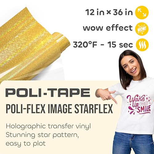 Poli-Flex® STARFLEX - Heat Transfer Vinyl (HTV) - 12 in x 36 in Holographic Iron-On Foil with Star Effect - Easy to Cut & Weed for DIY Shirts - Gold