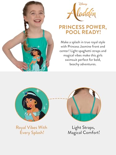 Disney Girls Swimsuit, Princess Jasmine Kids Swimsuit, Aladdin Girls Swimsuit, Kids Bathing Suit for Summer, Green 7