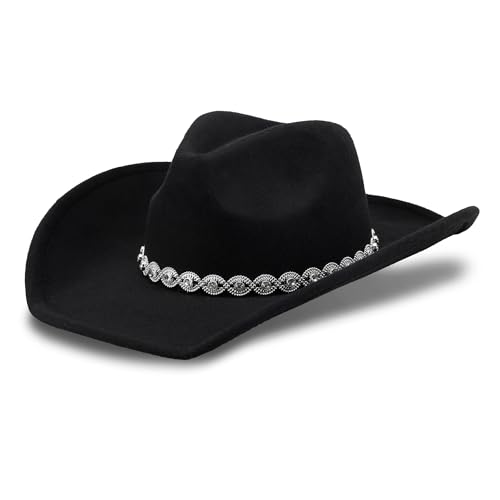 - Add a touch of country charm and glamorous flair to your wardrobe with the Jessica Simpson women's rhinestone band cowboy hat., Perfect for music festivals, country concerts, or sunny days, it completes any outfit effortlessly. Pair it with denim shorts for a casual look or a flowy maxi dress for a bohemian vibe., Featuring a western-inspired design and a sparkling rhinestone band, this stylish hat is a standout addition to any collection. The Interior Sweat band provides a soft and comfortable barrier between the hat and your forehead., One size fits all, 58 cm with an interior adjustable ribbon to ensure a snug fit for smaller head circumferences., Made from durable and comfortable materials to ensure long-lasting wear.