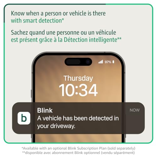 - Blink Outdoor 2K+ is our next-generation wireless smart security camera that delivers an improved visual and audio experience with sharp 2K video resolution and Colour Vision in low light., 2K video clarity — See more of what matters with sharper 2K video resolution. From subtle textures to defined edges, every frame reveals rich detail and enhanced colour even in challenging light conditions., Colour Vision in low light— Ambient lighting is all you need to experience around-the-clock peace of mind, allowing Outdoor 2K+ to give colour video at low light levels before switching to infrared black and white., Two-way audio with noise cancellation — Enhanced 2K video resolution and advanced noise cancellation provide sharp, natural conversations anywhere around your home, making every interaction feel like you're there in person., Smart detection — With an optional Blink Subscription Plan (sold separately), receive smart notifications for person and vehicle detection, ensuring you're only notified about the motion that matters most., 4x zoom — Get a closer look when you need it. Zoom in up to 4x to verify package delivery details, see visitors clearly, or identify vehicles in your driveway without losing crucial visual information., Blink Weather Shield — Built to brave the elements, Blink Outdoor 2K+ has a weather-resistant IP-65 design that stands up to rain, dust, and severe weather, keeping your security running strong all year round., Two-year battery life — Set up in minutes and get up to two years of power with included AA Energizer lithium batteries and a Blink Sync Module (sold separately)., Flexible placement — Blink Outdoor 2K+ streamlined wireless design complements any space while offering flexible mounting virtually anywhere around your home. From outdoor eaves to indoor shelves, enjoy sleek, effortless protection that fits your lifestyle., Includes one Blink Outdoor 2K+ camera, two AA 1.5V lithium Energizer batteries, and one mounting kit.