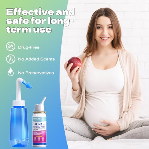 - Complete Sinus Care Set:This professional-grade nasal irrigation system combines the benefits of saline nasal spray and neti pot technology in one convenient kit. Includes 20 pre-measured saline packets, 4 detachable nozzles (adult & child), a leak-proof neti pot(300 ml) and saline nasal spray(60 ml) for daily nasal hygiene., Fast Congestion Relief: Isotonic saline spray moisturizes dry nasal passages and flushes irritants within minutes., On-the-Go Relief: Compact travel-friendly design fits in toiletry bags; saline packets prevent spills during commutes., Easy-to-Use System: Ergonomic pot with 60° spout ensures smooth flow control for maxillary/ethmoid sinus coverage., Wide Range of Applications: The multi-nozzle design accommodates both adults and children , making it a family-friendly solution for seasonal allergies, colds, or dry air discomfort. The neti pot features a wide-mouth design for easy filling and cleaning, while its anti-leak valve prevents accidental spills.