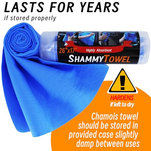 - 1. High-Performance PVA Chamois Towel for Car Crafted with advanced injection-molded PVA polymer, our synthetic chamois towel for car delivers lasting durability through repeated use. The smooth, non-abrasive surface protects vehicle finishes while absorbing moisture effectively., 2. Versatile Car Drying Shammy & Multi-Surface Design Each 26”x17” car drying shammy can be divided into two 17”x13” sections for multi-surface cleaning. Optimizes drying efficiency on cars, motorcycles, boats, and RV exteriors., 3. Gentle Shammy Cloth for Car Drying Engineered with ultra-fine PVA fibers, this shammy cloth for car drying removes water without leaving marks, residue, or streaks. Safe for glossy paint, glass, and chrome surfaces., 4. Exceptional Absorption Capacity Outperforms conventional sponges with high liquid retention. This car shammy releases moisture easily through simple wringing motions., 5. Easy-Care Shammy Towel for Car Maintain your shammy towel for car by storing it damp in an airtight container. If fully dried, a 10-second water immersion restores softness and absorption.