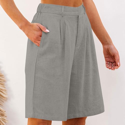Shorts for Women High Waist Plus Size Straight Legs Bermuda Short Dressy Casual Knee Length Work Shorts with Pockets