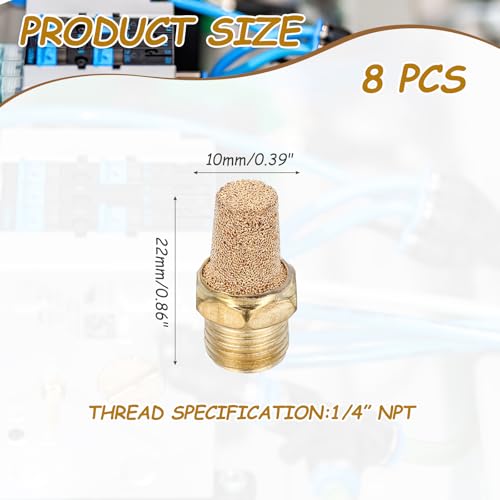 MECCANIXITY 8PCS Pneumatic Exhaust Muffler, 1/4" NPT Male Sintered Bronze Muffler Brass Air Line Fittings for Pneumatic Tools and Industrial Machinery