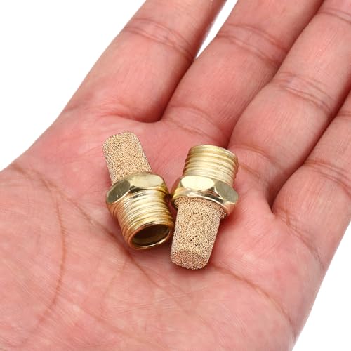 - Air exhaust muffler is mainly used to reduce the output pressure of compressed gas, thereby reducing the noise when the gas is discharged. Not only can it be used for air compressor noise reduction, it can also be used for cylinders, valves, crankcases, gearboxes, oil tanks, fans, compressors, vacuum pumps, throttle valves, pneumatic tools and other systems that require mufflers to clean exhaust and reduce., Pneumatic Muffler, Material: Brass, Length: 28 mm, Width: 15 mm, Thread Specification: 1/4” NPT, In the Package : 8 x Pneumatic Exhaust Muffler, pneumatic air muffler fittings is made of brass, it is resistant to high pressure, not easy to rust, corrosion-resistant, good high-temperature ductility, strong and durable, long service life. Threaded pipe fittings are made of precision machining, with clear and deep threads, tight and anti-slip, good sealing, leakage prevention, prominent nuts, not easy to be mixed with oil, easy to clean and maintain., 1.Thread Installation: Screw the muffler’s end directly into the exhaust port of valves, cylinders, or compressors.2.Tighten Securely: Use a wrench to ensure a snug fit without over-torquing (avoid damaging threads)., Thread Compatibility: Confirm your equipment’s port size before installation.