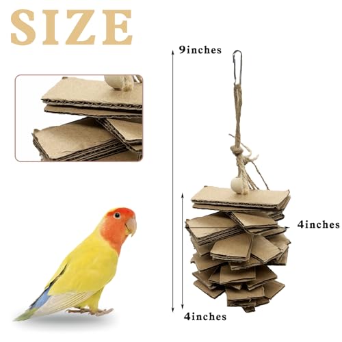 LWINGFLYER Bird Shredding Toys Natural Cardboard Paper Hanging Chew Toy for Small Parrot Budgies Conures Cockatiel Parakeet Lovebirds Canary (4 Pack)