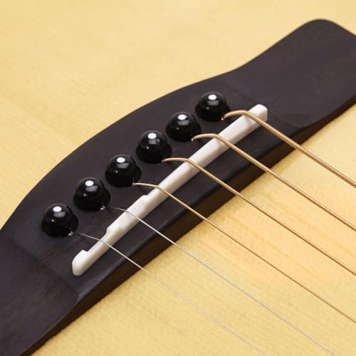 - 【Complete Kit】You will get 72 pieces of acoustic guitar bridge pins in black and white, 36 pieces of each color, 2 guitar nuts, 2 guitar saddles and 1 guitar bridge pin puller. Great replacement parts for old or damaged guitars., 【Quality Material】This guitar peg set is made of reliable plastic, stable, durable, reliable, not easy to break and can used for a long time., 【Practical & Convenient】The guitar bridge pin remover helps you pull the bridge pins directly without damaging the guitar, and guitar saddles and guitar nuts can bring out the hidden overtones of the guitar, while greatly improving the tuning performance and making the guitar sound fuller., 【Practical & Convenient】The guitar bridge pin remover helps you pull the bridge pins directly without damaging the guitar, and guitar saddles and guitar nuts can bring out the hidden overtones of the guitar, while greatly improving the tuning performance and making the guitar sound fuller., 【Wide Application】This acoustic guitar accessories are perfect for acoustic classical guitar, folk guitar, ukulele, etc. Bringing much convenience for your guitar maintenance and string changing work.