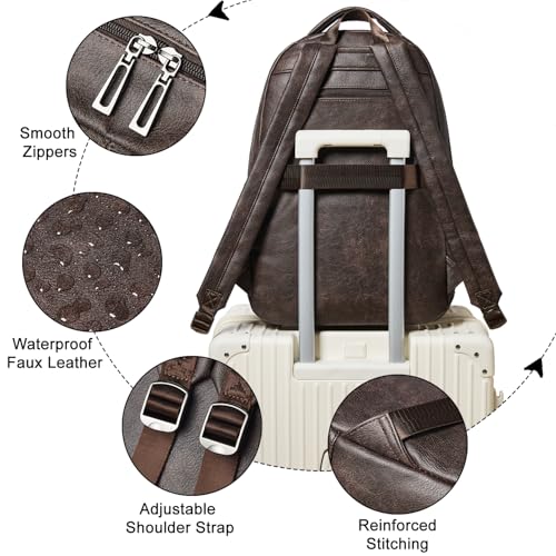 - ★LOTS OF STORAGE SPACE&POCKETS:This purses can be a laptop backpack, it can holds 15.6 Inch Laptop as well as 17 Inch 15 Inch,14 Inch and 13 Inch Laptop. The spacious packing compartment is roomy for daily necessities,tech electronics accessories. And the front compartment with many pockets, pen pockets, makes your item organized and easier to find., ★COMFY&STURDY:Travel backpack is made of soft PU leather with unique texture, which is comfortable and waterproof. And the handmade faux leather is durable and easy to clean. Equipped with durable metal fasteners and smooth zippers for long-lasting., ★AIRPLANE FRIENDLY&ANTI-THEFT POCKET:A luggage strap allows backpack fit on luggage/suitcase, slide over the luggage upright handle tube for easier carrying. With a hidden anti theft pocket on the back to protect your valuable items from thieves. Well made for international airplane travel and day trip as a travel gift for men, ★LIGHTWIGHT & LUGGAGE STRAP:Weight 2.1 LBS.This fashion purse fits a ton of things but lightweight.A luggage strap allows backpack fit on luggage/suitcase, slide over the luggage upright handle tube for easier carrying., ★Perfect Gift for Any Occasion – This stylish and functional backpack makes a thoughtful present for birthdays, holidays, Mother’s Day, Christmasseason. A versatile choice for women of all ages, from busy moms to college students and working professionals.