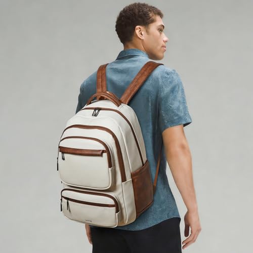 LATMAP 43L Backpack Purse For Women Leather Shoulder Diaper Bookbag Tote 17 16 15.6 Inch Laptop Bag Handbags For Travel Work College Large Beige