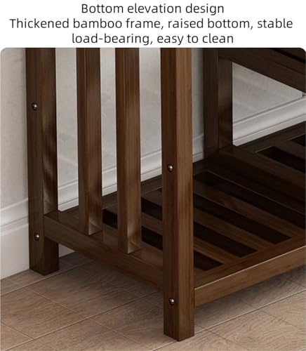 - 【Boot Storage】This shoe bench comes with a dedicated boot storage position. It is designed to accommodate boots of various sizes, keeping them upright and organized. This special feature makes it much more convenient for storing boots, preventing them from toppling over and getting damaged, 【Comfortable Cushioned Top】The bench is topped with a cushion filled with high-elastic sponge and covered in cotton and linen fabric. The combination of the soft yet resilient sponge and breathable fabric ensures a comfortable seating experience. It retains its shape well even after extended use, providing long-lasting durability and comfort, 【Premium Bamboo Frame】Constructed with a thickened bamboo frame, the shoe bench offers excellent stability and load-bearing capacity. Bamboo is a sustainable and strong material that can withstand the weight of multiple pairs of shoes and a person sitting on it. The frame's quality construction adds to the overall sturdiness of the bench, 【Convenient Side Handles】Equipped with bilateral handles, this shoe bench is designed for easy portability. The handles are carefully crafted and polished to provide a smooth and comfortable grip. They make it effortless to move the bench around, whether you need to reposition it for cleaning or to create more space in the entryway, 【Multifunctional Design】This shoe bench serves multiple functions. It acts as a practical shoe rack, allowing you to neatly store your shoes. At the same time, it doubles as a comfortable seat for putting on or taking off shoes. Its versatility makes it an essential piece of furniture for any entryway or hallway, 【Flexible Scene Application】Suitable for various scenarios. It can easily handle daily leisure activities, gatherings with friends, or outdoor picnics