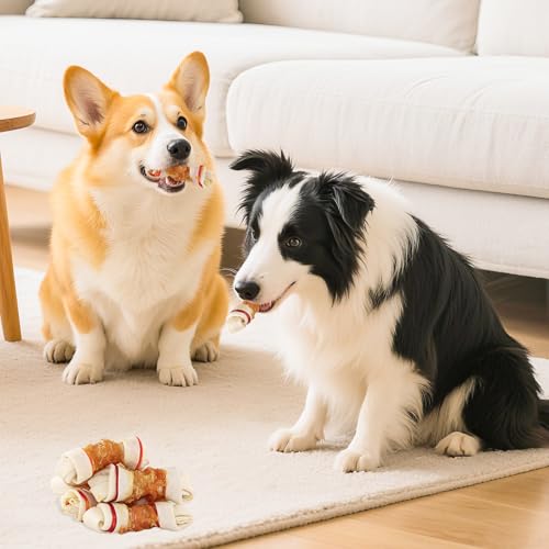 - Natural and safe treats: Dog Rawhide Bones are rich in natural ingredients with no harmful ingredients. With chicken meat wrapped in the middle, this tasty treats would hold appeal for your dogs, Easily digestible:Natural Chicken Hide Twists are Made From 100% Natural Chicken Breast Wrapped Delicately Around a Savory Rawhide Chew Healthy Dog Treats, High Protein, Low fat, Easy to Digest, Teeth grinding and cleaning:Beefhide is thick and long-lasting to better satisfy your dog's natural desire to chew; they provide a safe, alternative chewing outlet for dogs with aberrant chewing behavior, Perfect for training: Dog chewing rawhide bones can help divert your dog's attention away from destructive chewing behaviors and encourage a new positive chewing habit, Attention: These chicken wrapped dog bones may not be suitable for puppies. Please pay close attention to your furry friend while feeding to avoid the risk of choking if your dog eats too quickly