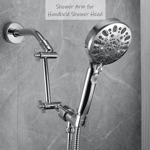 - [ALL-METAL SHOWER HEAD EXTENSION ARM] Made of sturdy METAL with durable BRASS swivel joints that resist rust, cracking and leaking. The brass material provides superior strength, ensuring your extended shower arm won't bend easily, [SUPERIOR SURFACE TREATMENT] Crafted with a high-quality, corrosion-resistant finish, this shower arm extension ensures long-lasting durability. It won’t fade or tarnish over time and easy to clean, [ADJUSTABLE SHOWER ARM EXTENSION] Easily customize your shower with a height-adjustable design. Raise a low-hanging rainfall showerhead for expansive coverage or lower a handheld showerhead for easier access and control. Perfect for optimizing comfort and convenience, [DURABLE & EASY-TO-SPIN KNOBS] Featuring two heavy-duty knobs with reinforced gear joints, these knobs securely hold your showerhead in place, even with heavier models. The easy-to-tighten grip offers effortless adjustments, ensuring a smooth and convenient shower experience. Ideal for handheld, rainfall, and dual shower heads, [Universal Connection] Universal G1/2 thread fits standard shower arms and shower heads, easy installation with our tool kit(Plumber Tape, Allen Key & Washers), instantly upgrading your shower for a more comfortable showering experience