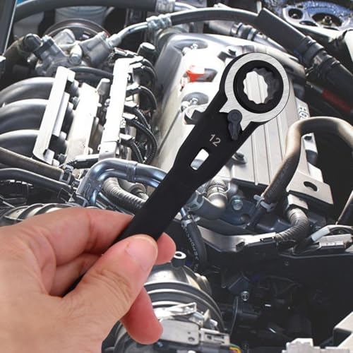 - Material: The spanner body is made of carbon steel and the ratchet is made of 50BV30 (chrome vanadium steel), which is hard and not easy to be damaged and long-lasting; the surface is blackened with manganese phosphate, which increases the abrasion and corrosion resistance, and also increases lubrication, making it operate more smoothly in the working process., Specification: This 4-in-1 ratchet is metric size, with four different specifications: 8mm, 10mm, 12mm, 13mm, each specification is clearly marked on the spanner; the shop also sells imperial and other metric specifications, you can choose and buy according to your own needs., 72 Teeth Ratchet: This ratchet spanner adopts a precision structure of 72 teeth, which requires only a minimum of 5° movement to turn the fasteners and improve the working efficiency., Reversible Design: The reversible function of this spanner allows you to easily deal with bolts or nuts in different directions without the need to frequently change tools or adjust the position of the wrench, which is more flexible and convenient than ordinary wrenches, making your work easier, faster and more accurate., Application: This spanner includes four different spanner sizes, so it can save you money, storage space, and time to change tools while working, it is a powerful helper for machinery, auto repair, workshop and other occasions.