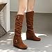 Ladies Fashion Elevated Wedge Heels Long Suede Boots for Women with Stylish Belt Buckle Decoration (Brown, 8.5)