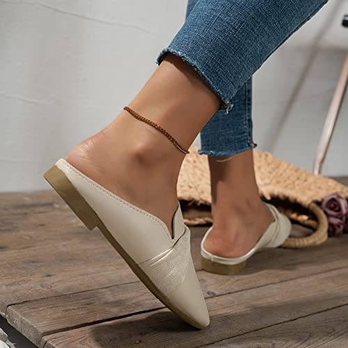 Trendy Women's Casual Shoes Comfortable Flat Leather Slippers Fashionable Round Toe Design Versatile Everyday Wear (Beige, 9)