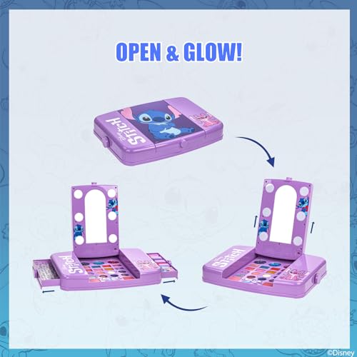 Stitch Cosmetic Light-up Vanity Makeup Set Includes Lip Gloss, Eye Shadow, Brushes, Nail Polish, Nail Accessories & More! for Teens Girls by Townley Girl