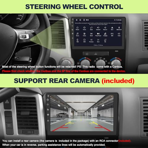- ✅Android 13 Touchscreen for Toyota Sequoia 2008-2018, for Toyota Tundra 2007-2013 : Equipped with the latest Android 13 operating system that guarantees maximum security, customization, and compatibility with over 3 million apps on Google Play. The combination of 2GBand 64GB allows you to run multiple apps simultaneously without lag. Bluetooth + Wi-Fi: Stream music via Bluetooth while downloading updates via Wi-Fi. Transform your dashboard into a smart entertainment center!, ✅Support for CarPlay/Android Auto Wireless/MirrorLink: You can activate iOS CarPlay or Android Auto via a wired or wireless connection. With built-in voice recognition like Siri or Google Assistant, you can control navigation apps, music, messages, and calls directly from the screen without touching the device., ✅Online GPS Navigation: Includes an external GPS antenna (mount it outside the glove compartment for optimal signal). Allows you to use online navigation apps via Wi-Fi, CarPlay, or Android Auto., ✅Versatile Multimedia Playback: Includes multiple connection options: 2 USB ports, RCA inputs for subwoofer, speakers, and a rear camera. Tune in to FM/AM/RDS stations in US or during international trips. Offers 9 preset sound effects (jazz, pop, classical, etc.) and manual equalizer (EQ) adjustments to customize audio in 4 zones: front left/right, rear, and full mode., ✅Reverse Assist: Connect an AHD720P/CVBS rear camera (included) via the RCA port. When reversing, guidance lines will be displayed on the screen. Compatible with original reversing radars (modified radars are not supported)., ✅Split Screen Mode: A vibrant 10.1-inch IPS display with split mode: display CarPlay/Android Auto on one side and the rear camera view on the other. HD resolution and 60Hz refresh rate for crystal-clear images while navigating and streaming., ✅2-Y services with technical support. Includes a manual 5 language and professional assembly tools. Component repair or replacement is available in all cases. Personalized support via email and an online platform.
