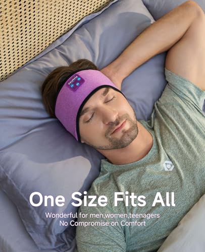 - Sleeping Headphones & Music Headband & Sleep Mask - 2025 New Bluetooth Headband with built-in lightweight speakers, no need to wear extra earphones for insomnia, relaxation, meditation, traveling and more. Perfect for shift workers, tinnitus sufferers, and those who share a bed with a snorer, wearing this musical headband will allow you to sleep better, Side Sleeper's Sleeping Companion - The control module of this headband headphones is set in the middle of the forehead, it won't press on the ears when lying down, perfect for flat or side sleepers. The upgraded ultra-thin speakers are comfortable to wear and a great companion for listening to blogs and music before falling asleep. (Please adjust the position of the speakers left and right after wearing the headband to align them at your cochlea for a better sound quality experience), Comfortable & Breathable Material Headband - Bluetooth headphones headband is made of 95% polyester fiber and 5% spandex, it is very elastic and fits most head shapes. The Bluetooth headband absorbs sweat, breathes and dries quickly to keep sweat and hair out of your eyes while exercising, perfect for jogging or working out. (Please remove the Bluetooth module before washing it.), Long Battery Life & Stereo Sound - The sleeping headphones have a powerful built-in rechargeable battery that provides over 12 hours of playback time after only 1-2 hours of charging, so you can enjoy music or audiobooks all night long. The high quality chip provides clear sound during exercise, and the simple buttons and their easy operation make exercise simpler, All Satisfaction - We take pride in ensuring that our customers are fully satisfied with our product. If you encounter any issues while using our Bluetooth headband, please do not hesitate to contact our after-sales team via email. We will make any effort to provide a satisfactory solution within 6 hours. Additionally, our product comes with 2 years manufacturer's warranty, and you can receive a refund with no questions asked within 365 days of purchase if you don't like it