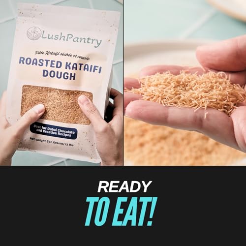 Lushpantry Roasted Kataifi Dough, Chopped for Dubai Chocolate, Kunafa & Baklava, Kataifi Shredded Fillo Dough