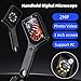 - Wide Angle HD Display: Featuring a 3 inch wide angle HD screen with broad color gamuts and a 178° viewing angle, this handheld digital microscope delivers true to life color details. Eight adjustable LED lights enhance visibility in low light settings while reducing eye strain., High Accuracy Autofocus Lens: Equipped with a 500x AF auto focus lens and a 2MP camera, this digital magnifying glass supports photo and video capturing. It offers expandable storage via a small memory card (not included) and ensures seamless data transmission to any PC system., Ergonomic Handheld Design: The handheld design follows the curve of your palm, offering comfort during prolonged use. The portable microscope camera includes a physical magnifying function, facilitating precise operating with ease., Efficient Battery Performance: With a built in 900mAh battery, the microscope supports 2.5 hours of continuous use. It charges quickly via a Type C interface, making it ideal for outdoor applications., Multiple Applications: Designed with a shockproof frame and anti interference cables, this handheld digital microscope withstands high welding temperatures and complex outdoor environments. It's ideal for repair diagnostics, precise welding, and lab observations.