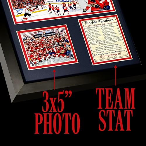 - Legendary Quality: This wall art comes with (1) 8" x 10" photo, (1) 3" x 5" photo, & (1) biography for the 12" x 15" size or (1) 11" x 14" photo, (2) 4"x6" photos, & (1) biography for the 18" x 22" size mounted on bevel-cut double-matting under glass, A Collector's Memorabilia: Each decorative sports room decor is handmade in the USA and is designed to capture one-of-a-kind memories, displaying exciting moments when Florida Panthers won the 2024-2025 Stanley Cup Champions, The Perfect Gift for Fans: Whether a gift for a birthday, holiday, special occasion, or just to celebrate the championship, this framed wall decor adds a piece of history to any home, office, bedroom, bar, garage, or man-cave, Meaningful, Unique, Lasting: We take extra care in handcrafting, packing, and shipping your NHL memorabilia to prevent any glass or frame damage, ensuring a safe delivery of your framed hockey photo collage, Ready to Hang: Take the wall art decor right out of the box and put it right onto the wall with the pre-installed wire hanger; make your collecting experience as fun, easy, and rewarding as possible with this no-assembly sports memorabilia