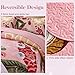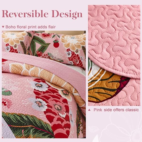 Tyrot 3 Piece Pink Boho Floral Full/Queen Quilt Sets Farmhouse Botanical Reversible Lightweight Bedspread with 2 Shams Butterfly Microfiber Bedding Quilts Set for All Season, 90''x96''