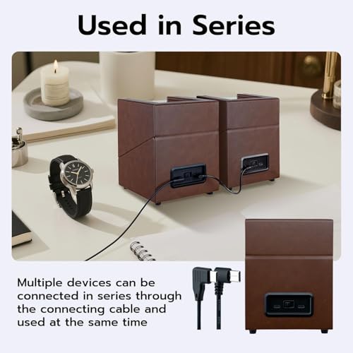 - Elegant Design: Dual Watch Winder with Transparent Acrylic Window to protect your timepiece from scratches while ensuring continuous operation. Its elegant design not only enhances functionality but also serves as a stylish accessory., Premium Adjustable Cushions: The winder accommodates watches with case diameters under 58mm, thicknesses under 28mm, and strap lengths between 180mm and 210mm., Power Requirements: The dual watch winder operates using any standard phone charger (output: 3V–9V, 0.5A). The power adapter is not included. Do not use adapters from other devices.The winder rotates approximately 970–2,430 turns per day and is exclusively for mechanical watches (not suitable for quartz watches)., Two Operating Modes:Mode B (Short-Term Run): Winds clockwise for 2 minutes, pauses for 6 minutes, then winds counterclockwise for 2 minutes, repeating this cycle.Mode L (Long-Term Run): Winds counterclockwise for 2 minutes, pauses for 18 minutes, then winds clockwise for 2 minutes, repeating the cycle. The device can be turned off when not in use., Important Note: To prevent your watch from stopping after using the winder, manually wind the crown 20–40 times before placing it inside. This ensures sufficient power reserve. Once fully wound, the watch can be stored in the winder to avoid power depletion.