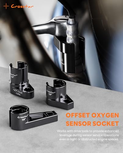 Crosstar Automotive Service Socket Set - 12pc Tool Kit for Oxygen Sensor Access, Includes 22mm, 27mm, 29mm, 7/8-inch and 1-1/16-inch Sockets with Thread Maintenance Tools