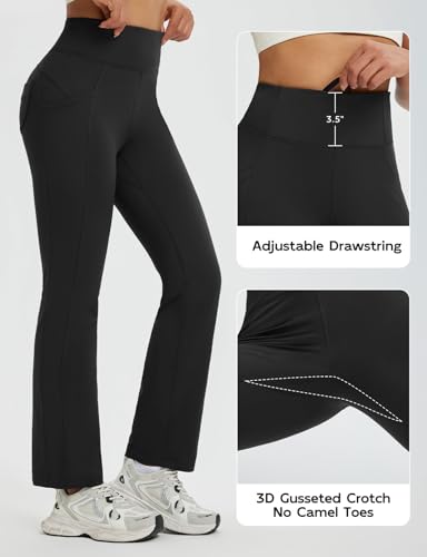 baleaf Women's Fleece Lined Pants Thermal Leggings Warm Winter with Pockets Water Resistant Bootcut Flare Track Pants Black XL